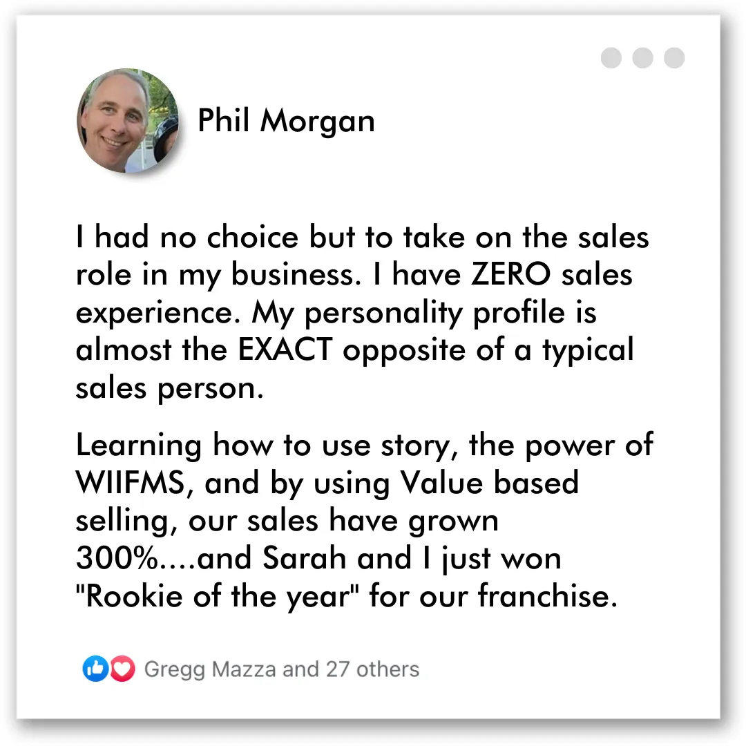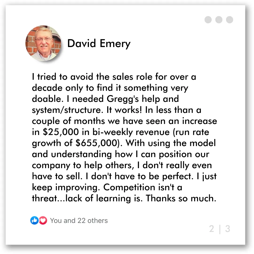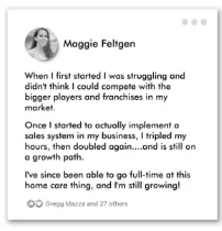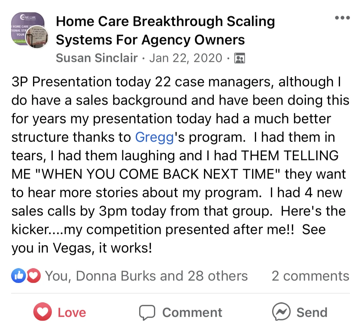 Then she copied this system, hired a sales person, followed my management system and she quickly doubled her referrals…